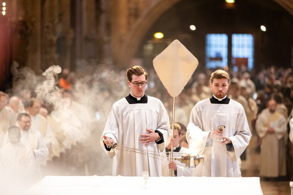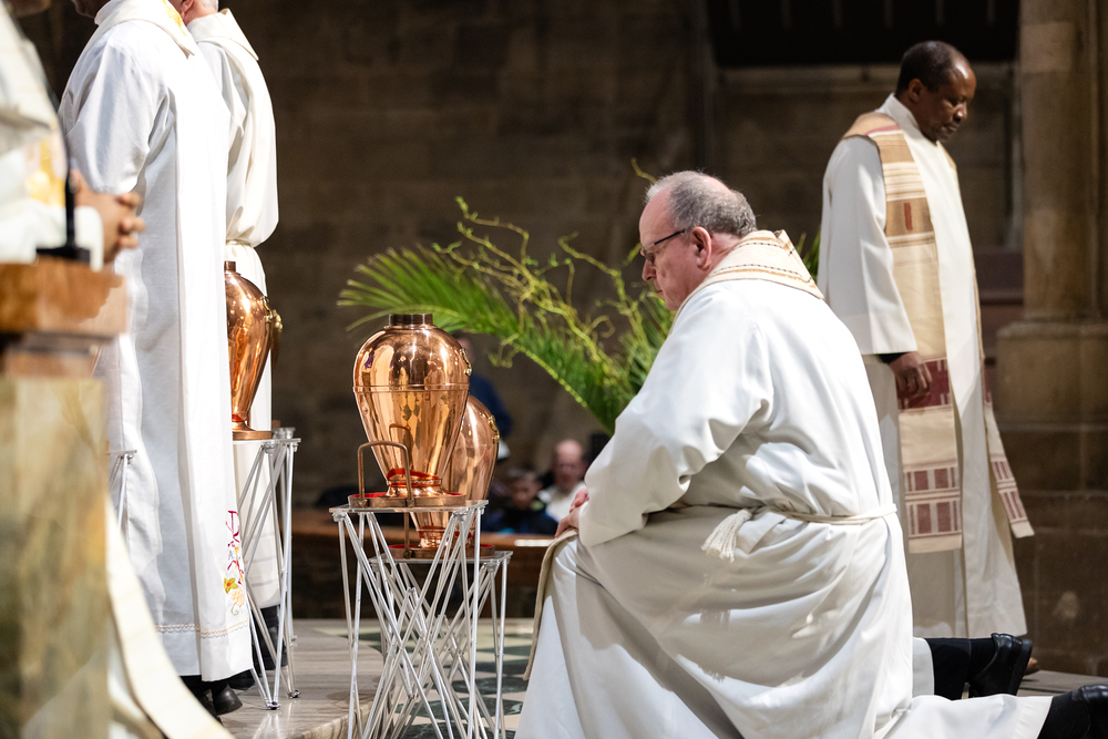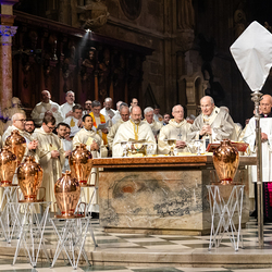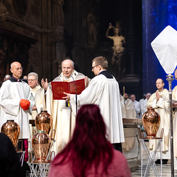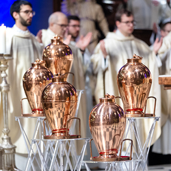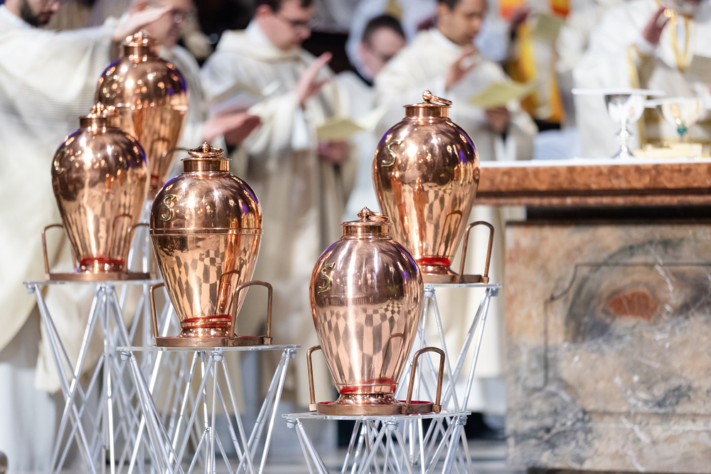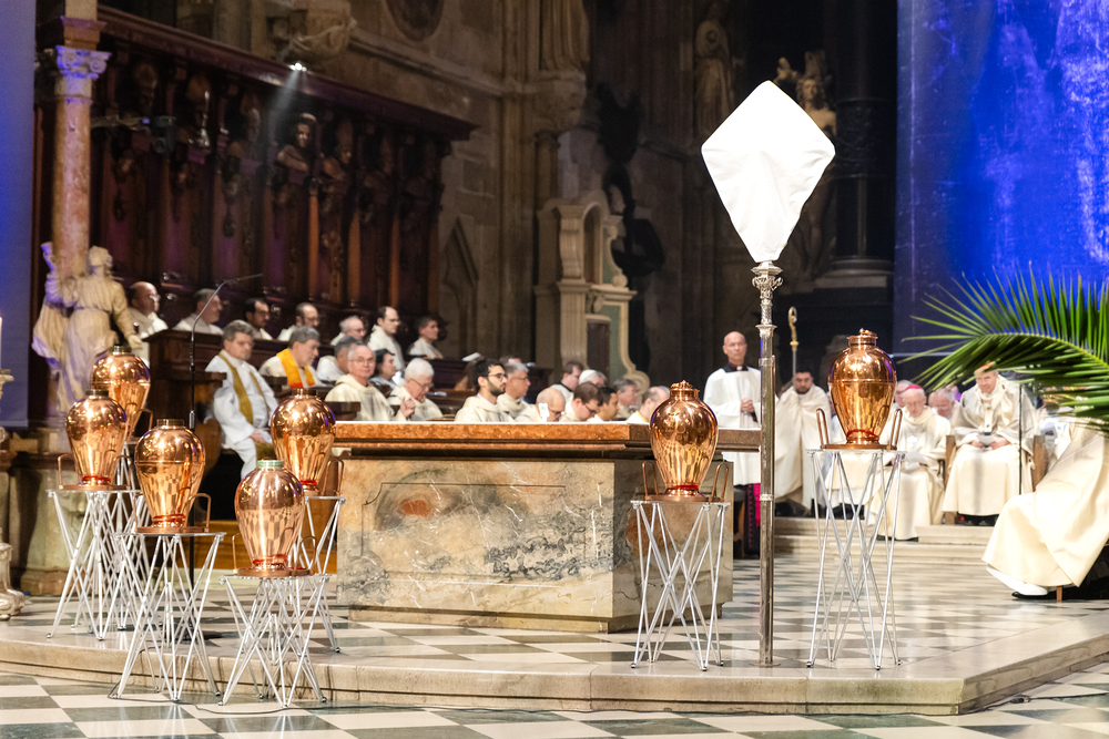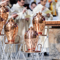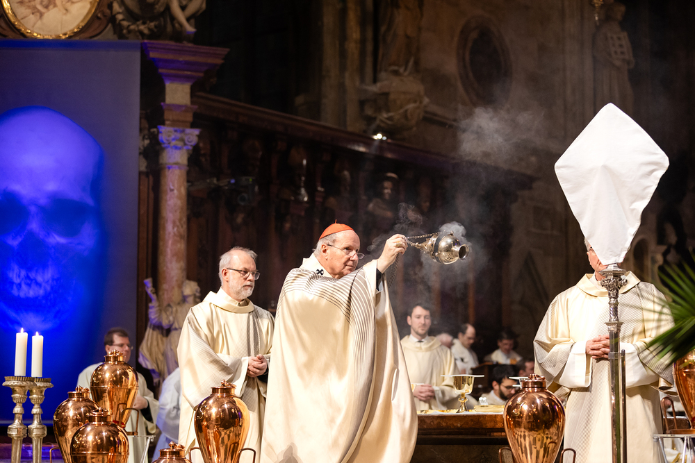 Die Weihe der Heiligen Öle in der Chrisammesse versammelt zu Beginn der Karwoche Priester, Diakone und Gläubige der Diözesen im Stephansdom. Die Priester und Diakone erneuern dabei ihr Versprechen für den Dienst in der Kirche, während die anwesenden Gläubigen die Weihe der Heiligen Öle mitfeiern. Diese Öle werden während des Jahres in den Pfarreien bei Taufen, Firmungen und Krankensalbungen verwendet.