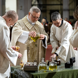 Am Mittwoch feierten die katholischen Gemeinden und Gemeinschaften des 18. Bezirks im Rahmen einer speziellen Messfeier, die von Radio Maria übertragen wurde, in der Pfarrkirche Weinhaus die Verteilung die vom Herrn Erzbischof geweihten Heiligen Öle. Dechant P. Arkadiusz Zakręta CM stand der Feier vor. Wir waren mit der Kamera dabei.